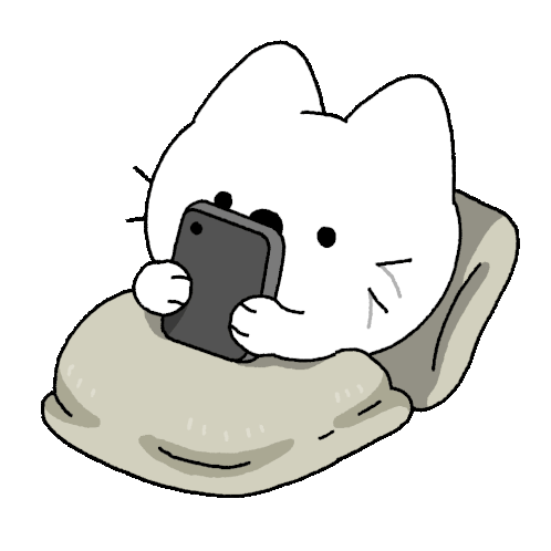 A sleepy cartoon cat lies on a pillow, engrossed in its smartphone. A perfect sticker for night owls and late-night scrolling.