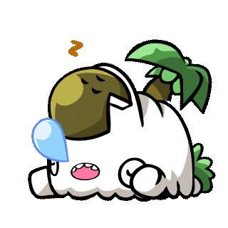 Frutti Dino, the cute character, is sound asleep, taking a peaceful nap with a bubble from its nose.