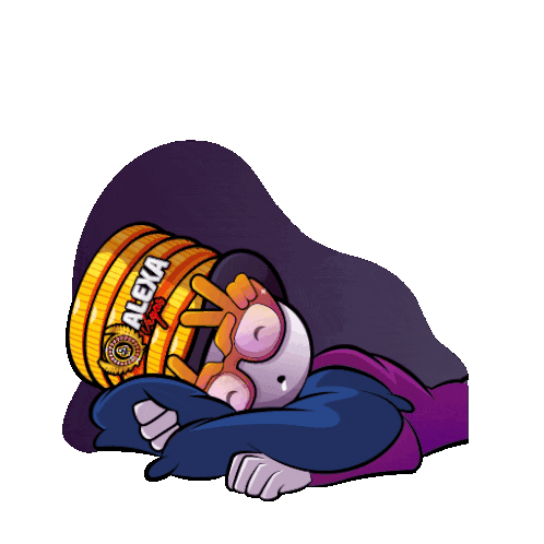 Cartoon character Alexa Vegas, a Jakmania supporter, sleeping soundly with Zzzs floating above.