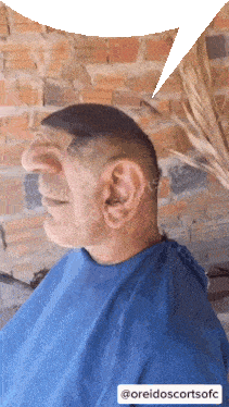 a man in a blue shirt has a speech bubble above his head that says oreidoscortsofc
