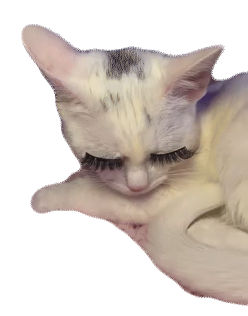 a close up of a cat with its eyes closed on a white background