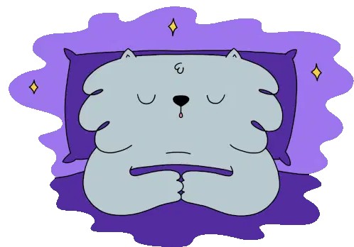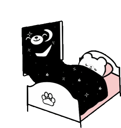A cute cartoon bear peacefully sleeps in its bed under a starry night blanket, dreaming sweet dreams.