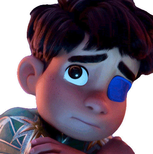 Elio Solis, the animated character from Disney Pixar, shows a subtle, slightly relieved expression with his blue eye patch.