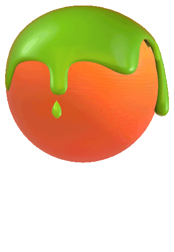 A vibrant orange sphere covered in bright green slime, with animated drips falling off, reminiscent of classic Nickelodeon branding.