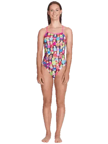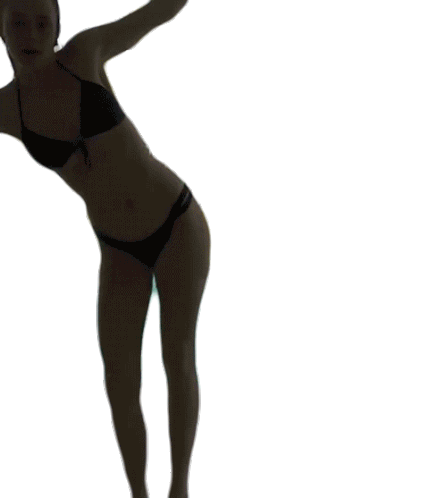A woman in a black bikini slips and falls, landing on her back with her legs in the air.