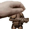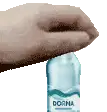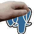 Close-up of a hand holding a blue Slonik Postgres sticker with the letter 'f' on it, perfect for tech enthusiasts.