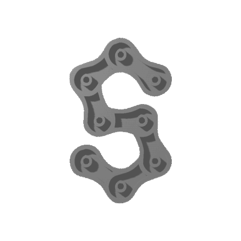A dynamic 3D logo, resembling a stylized 'S' or '3' crafted from bicycle chain links, spinning on a white background.