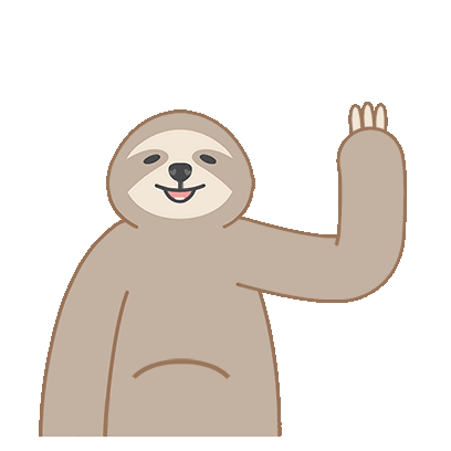 A cute, happy cartoon sloth with a gradient body points its finger upwards, as if having an idea or making a point.