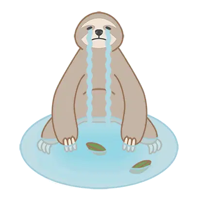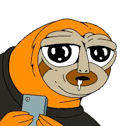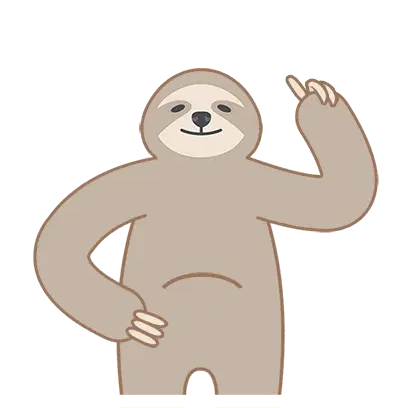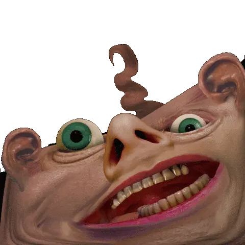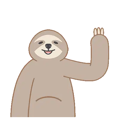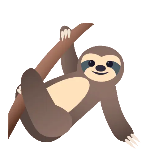 An excited, happy cartoon sloth head laughs with its mouth wide open, even drooling a little.