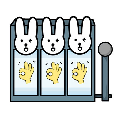 Three cute cartoon rabbits in a slot machine, ready for a game. A fun and playful sticker for luck and gaming.