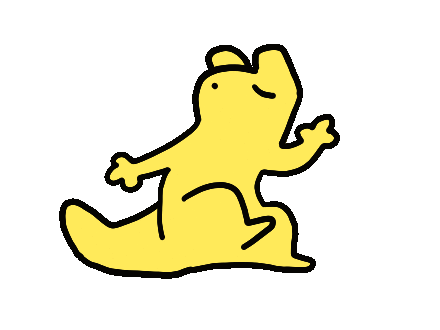 An animated yellow Slugcat from the game Rain World, depicted in a simple, hand-drawn style.