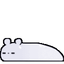 A pixel art white Slugcat from Rainworld is shown lying down, appearing relaxed or asleep on a white background.