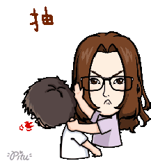 An animated sticker by Pitu featuring an angry brown-haired girl smacking a boy, who has a bloody nose.