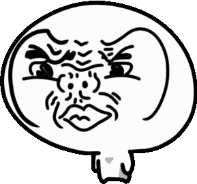 A small, hand-drawn cartoon face with a clear 'nope' or unimpressed expression, featuring half-closed eyes and a downturned mouth.