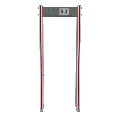 A smart access control device with facial recognition, temperature screening, fingerprint scanner, and card reader for secure entry.