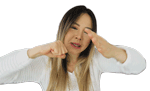 Chloe Ting shows her tough side, smashing her hands together in a determined, ready-to-fight gesture, conveying strength and motivation.