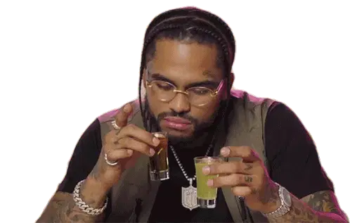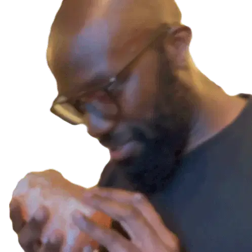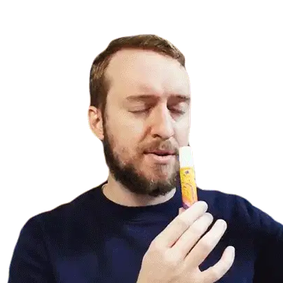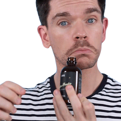 Robin James smells a bottle of fragrance, closing his eyes to savor the scent of the product.