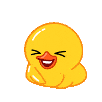 a yellow rubber duck is laughing with a tear coming out of its eye .