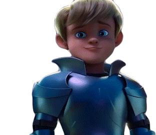 Fred, the knight from Scoob!, voiced by Zac Efron, smiles brightly in his blue armor.