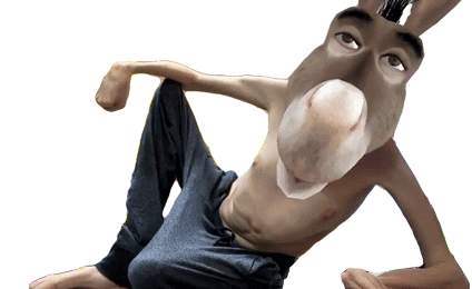 Ricky Berwick's body with a cartoon donkey head, featuring a wide grin and relaxed pose, perfect for a funny reaction.