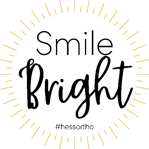 A close-up of a person's mouth, showcasing a wide, bright smile with visible dental braces.
