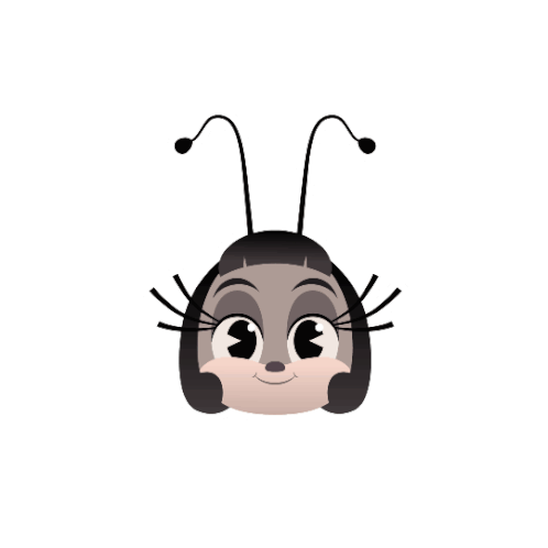 Blossom, a cute ant-like character from IF Movie, smiles sweetly and looks around with expressive eyes.