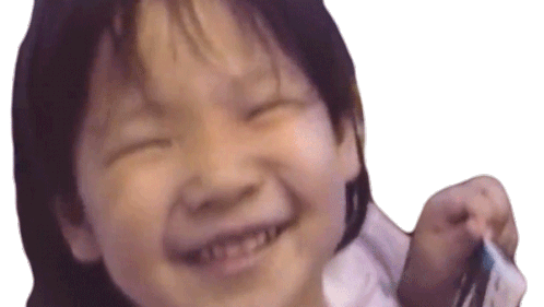 Cl, a cute kid, flashes a wide, joyful smile with eyes closed, laughing heartily and radiating happiness.