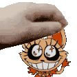 A cute Smiling Critters Catfiene character happily receives gentle pat pats on its head from a hand.