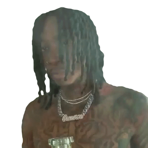 Wiz Khalifa, the rapper, smiling with his signature dreadlocks, tattoos, and a 'Cameron' name necklace.