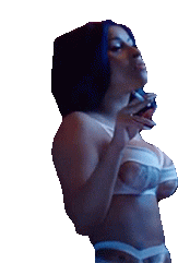 Cardi B in lingerie, smoking a cigarette and looking up with a confident expression, exuding a bold aura.