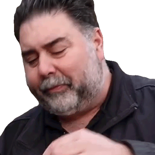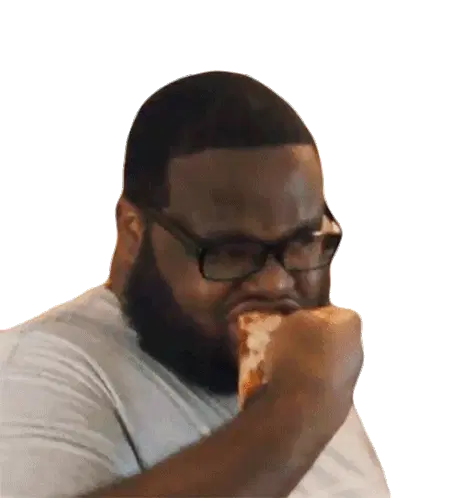 Chris Frezza enjoys a tasty snack, eyes closed in delight, then looks up with a satisfied expression in this animated sticker.