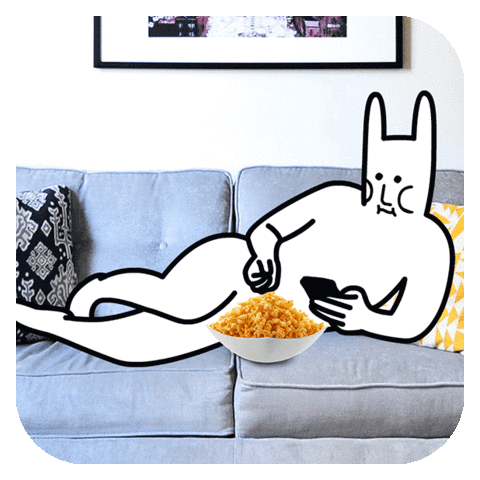 A cheerful, animated popcorn bucket with a happy face, eagerly watching a movie. Perfect for expressing excitement about cinema or enjoying snacks.