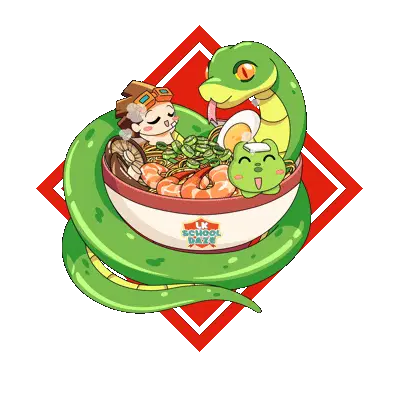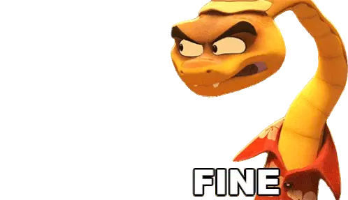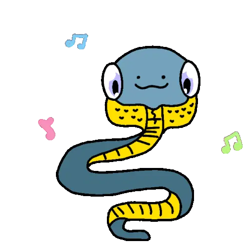An animated yellow snake with red spots and an angry expression performs a circus act, flicking its tongue.