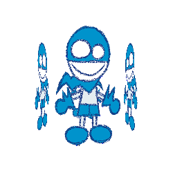 Chalkzone character Snap spins rapidly, accompanied by a larger, stylized blue and white object, creating a dynamic animated sticker.