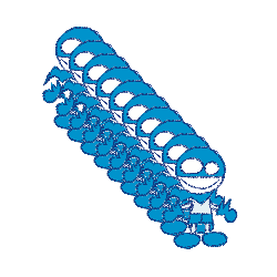 A row of blue, chalk-style cartoon characters with big smiles, flickering in a 'snap snap' animation.