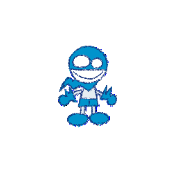 a blue cartoon character with a scarf around his neck is smiling and giving a thumbs up .