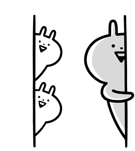 Two cute Usagyuuun rabbit characters happily peek from behind a wall, with a balloon also peeking on the other side.