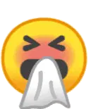 A cartoon man with dark hair and a blue shirt sneezes, showing a distressed expression before the sneeze.