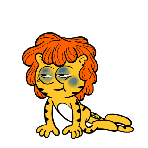 A cartoon tiger-like character with a large orange mane lies face down, appearing tired and unwell, possibly suffering from a cold or flu.