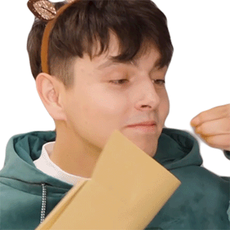Jdabrowsky, wearing deer antlers, closes his eyes and happily sniffs something from a paper bag, indicating it "Smells Good".