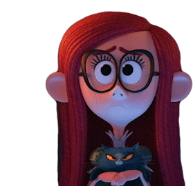 Jane Willoughby, the red-haired girl from The Willoughbys, looks sad and sniffling while holding her grumpy black cat.