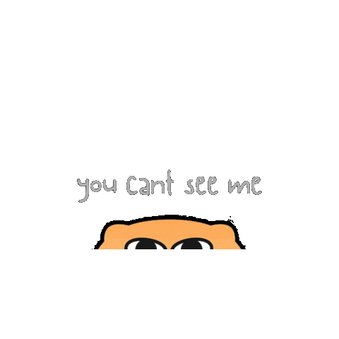 A cartoon cat peeks from a green bush with the text "you Cant see me" above it, playfully hiding.