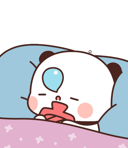 A cute panda sleeps soundly, dreaming of two adorable bears cuddling affectionately in a thought bubble.