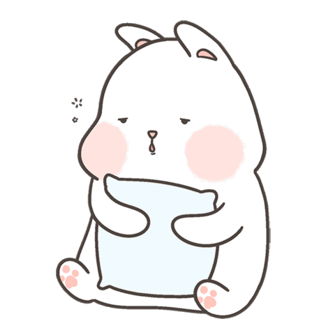 A cute white bunny character is napping peacefully, holding a light blue pillow, with a snot bubble indicating deep sleep.
