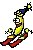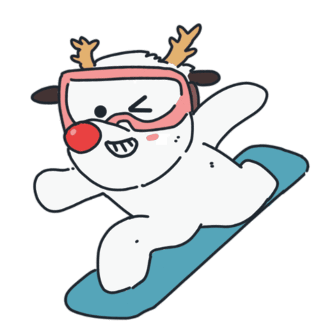 An animated sticker featuring a snowboarder gliding down a snowy slope, perfect for winter sports enthusiasts.