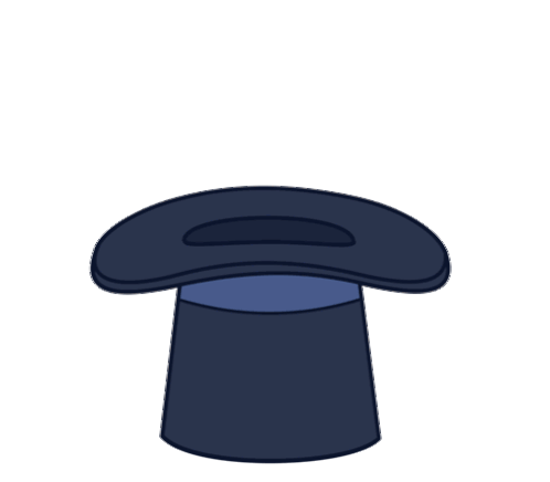 A white bunny with long ears pops out of a black magic hat, representing Snowy from Royalsnextdoor.