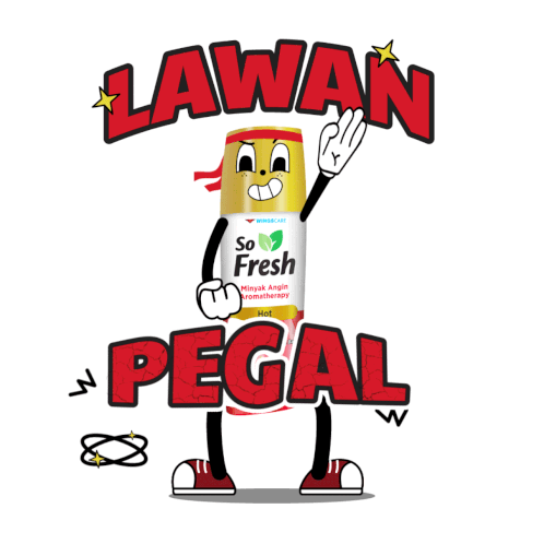 A lively cartoon So Fresh bottle character encourages fighting aches ('Lawan Pegal') with its aromatherapy minyak angin.