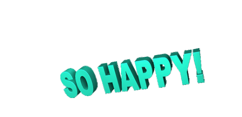 Vibrant animated text displaying 'SO HAPPY!' in a cheerful, bouncy style to express joy.