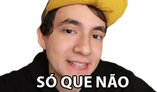 Gabriel Dearo says 'Só Que Não' with a playful smirk, indicating a humorous contradiction or 'not really'.
