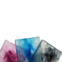 A hand holds three vibrant, handmade soap art bars, each with unique swirled colors.